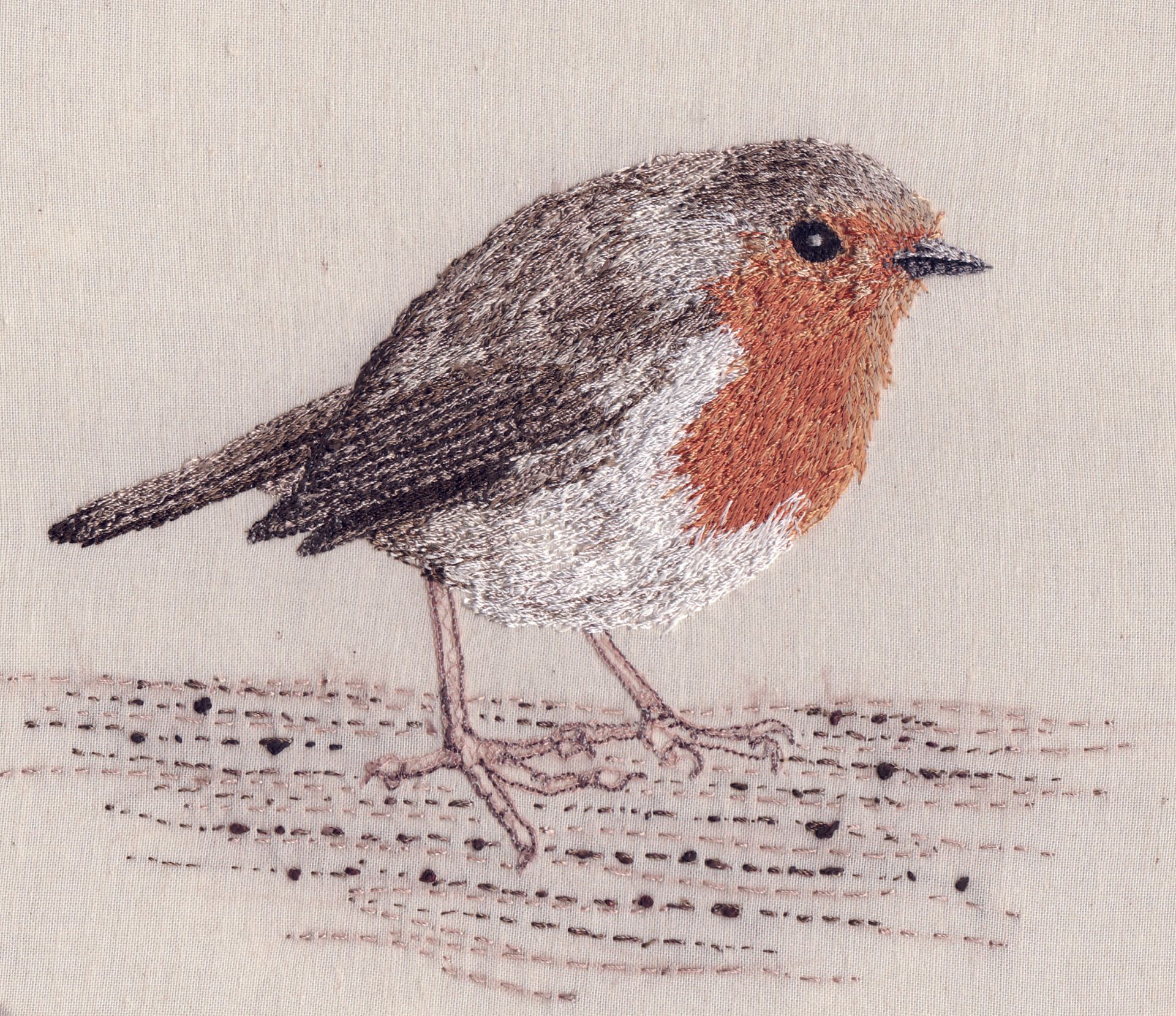 ButtonThis robin was a step by step project in my book. He is free machine embroidered with hand stitched details.