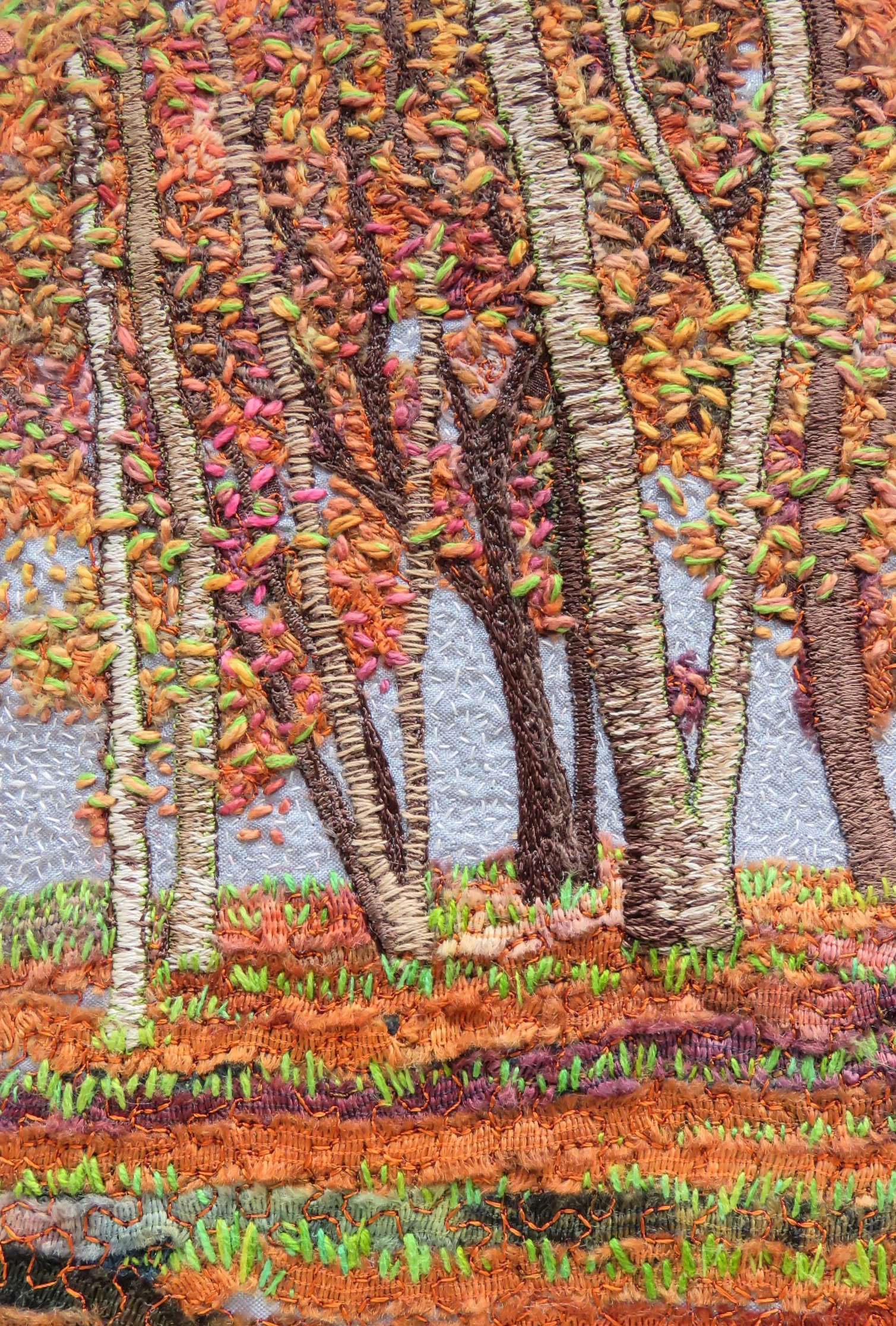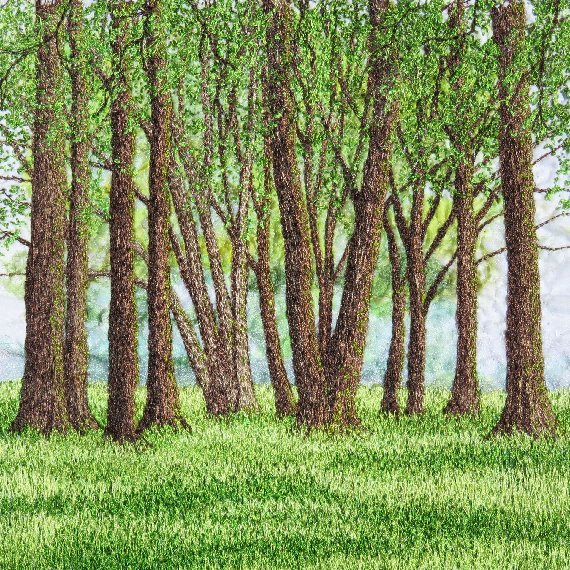 ButtonCoppice of trees stitched with a combination of free machine embroidery techniques.