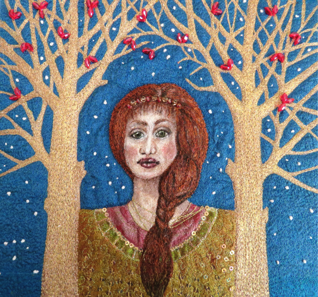 ButtonFantasy embroidery before frozen was a thing. Free machine embroidery on canvas with hand stitched details.